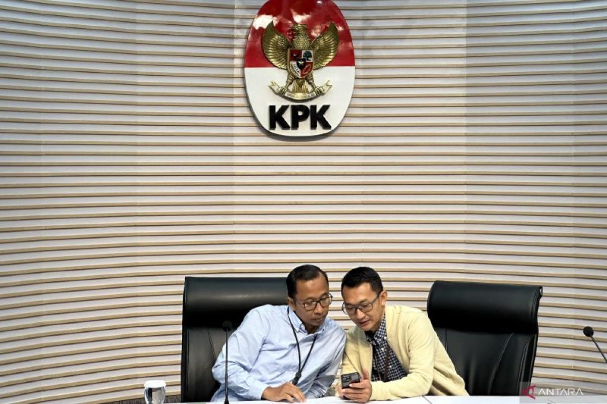 Pelaksana Harian Direktur Penyidikan KPK Budi Sukmo Wibowo (kiri) bersama Juru Bicara KPK Budi Prasetyo di Gedung Merah Putih KPK, Jakarta, Kamis (5/6/2025). ANTARA/Rio Feisal