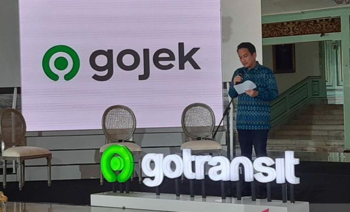 Direktur Utama GoTo Andre Soelistyo pada peluncuran GoTransit di Pura Mangkunegaran Solo, Kamis (23/2/2023). (ANTARA/Aris Wasita)