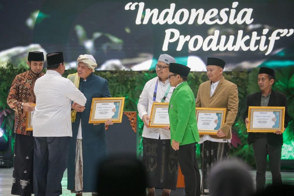 Presiden Prabowo Subianto, bersama Ketua Umum Partai Kebangkitan Bangsa (PKB), Abdul Muhaimin Iskandar atau yang akrab disapa Cak Imin, menyerahkan langsung penghargaan kepada lima pesantren salafiyah.