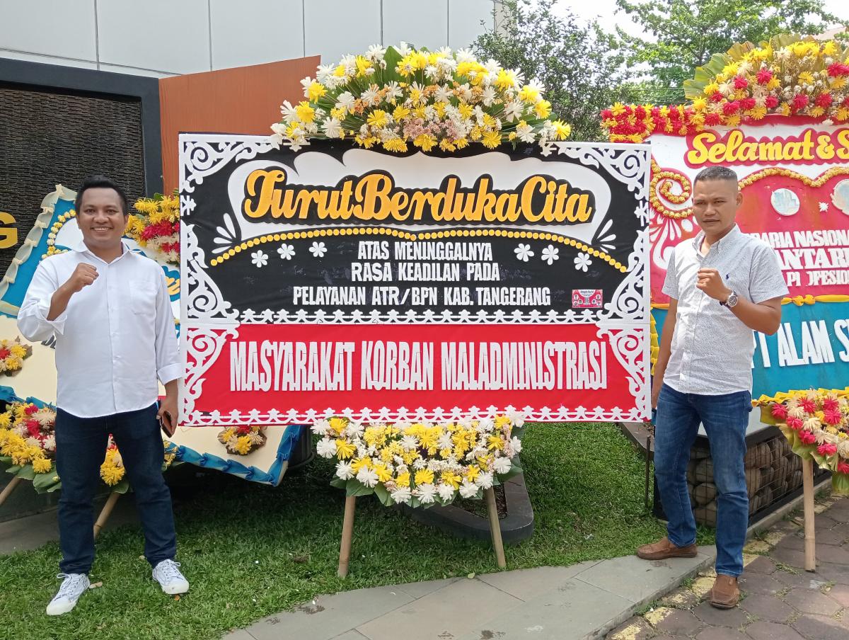 Karangan bunga itu bertuliskan pesan yang cukup pedas: "Turut Berduka Cita Atas Wafatnya Standar Operasional Prosedur Pelayanan ATR/BPN Kabupaten Tangerang" dan "Turut Berduka Cita Atas Meninggalnya Rasa Keadilan Pada Pelayanan ATR/BPN Kabupaten Tangerang.